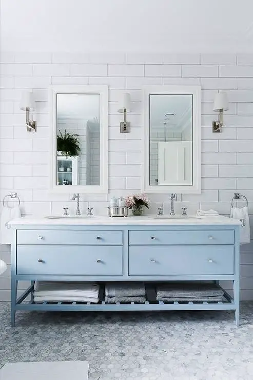 Anyhoooo, I tend to like decor on the more transitional side. Nothing too modern, but not too traditional either. I like things to look classic and timeless not overly modern or too trendy. That is just me though. You may hate this look. To each his own! Here are a few inspiration photos that I found on Pinterest for our Master Bathroom, still trying to keep with the Beachy/Coastal theme too.
