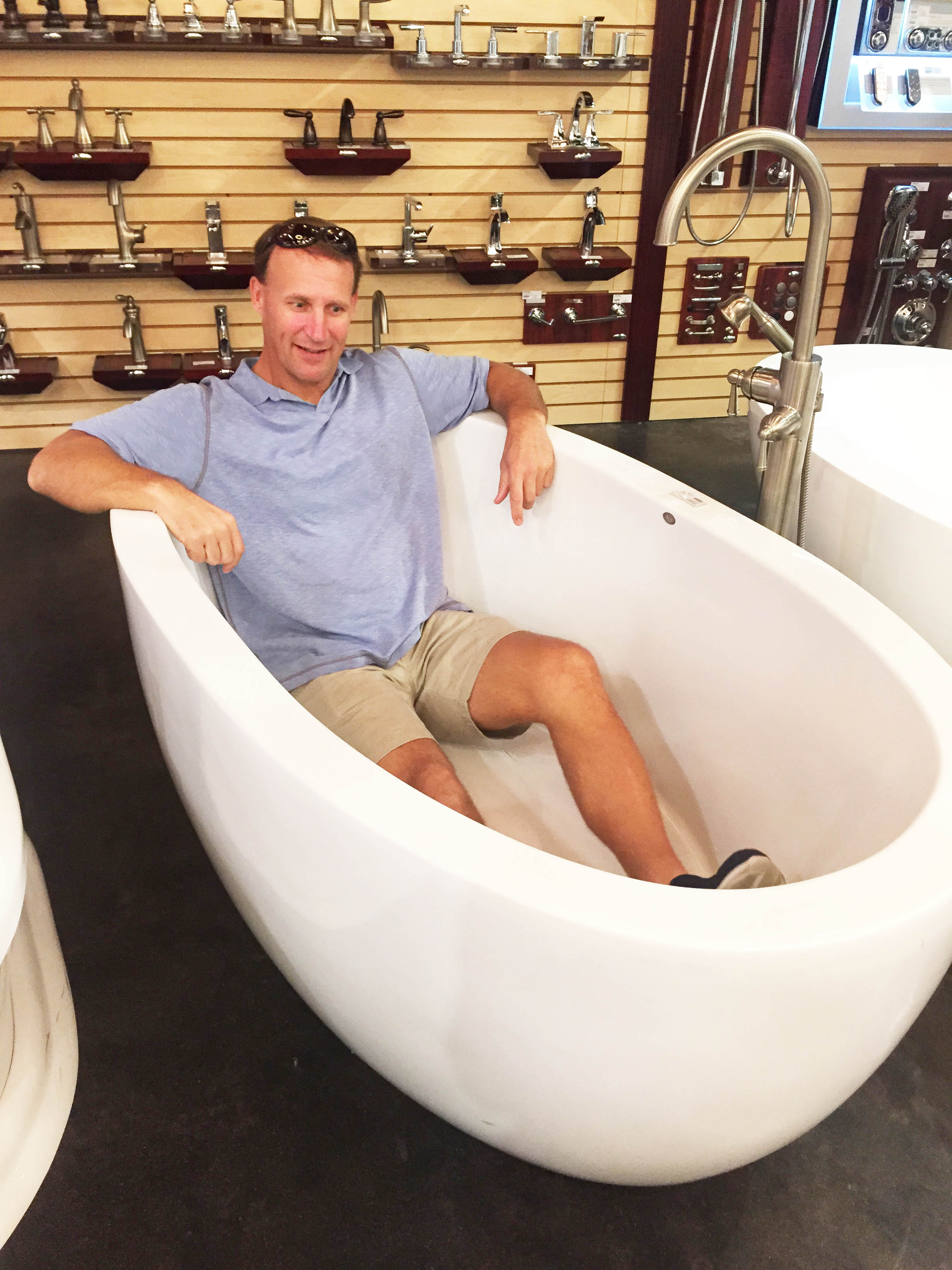 Will it be a tub for two?? Hahaha You hubby looks like he’s taking all the room! Looks very tough making all those decisions but must be fun too! Good luck